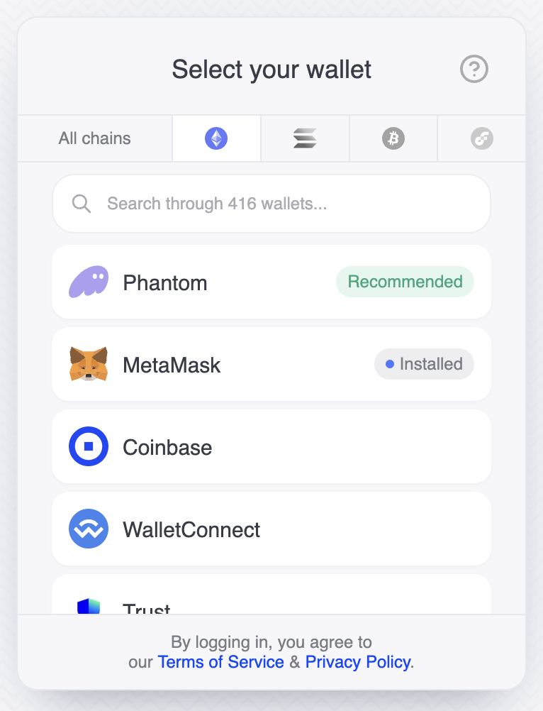 * Handles the button click event by setting the default tab to Ethereum and showing the authentication flow.